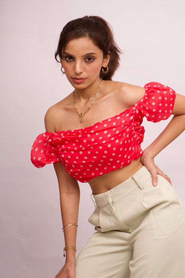 A pink affair with a touch of Indianness with the bandhani print. Pair it with shorts, flowy skirts and you are ready to rock.